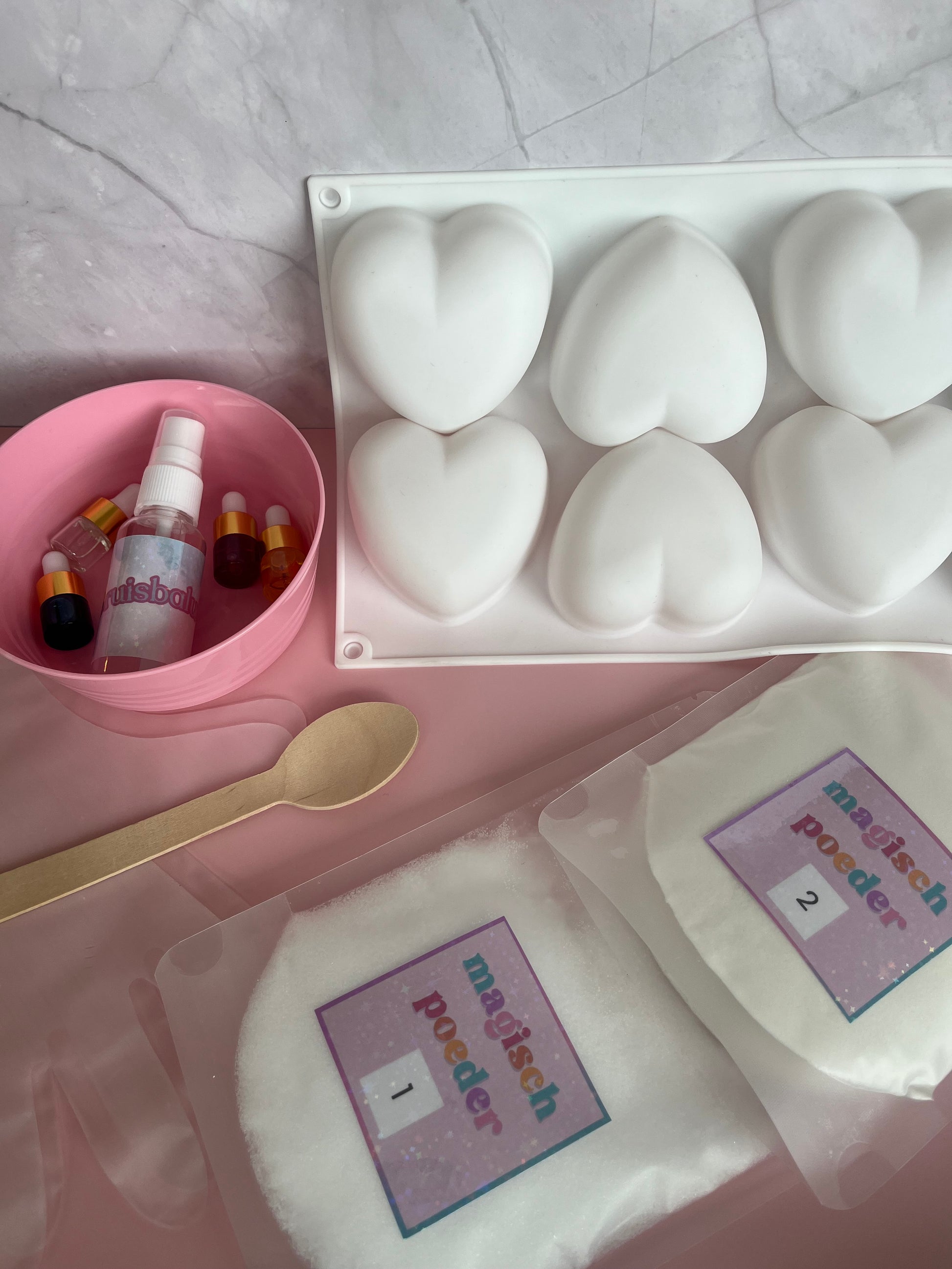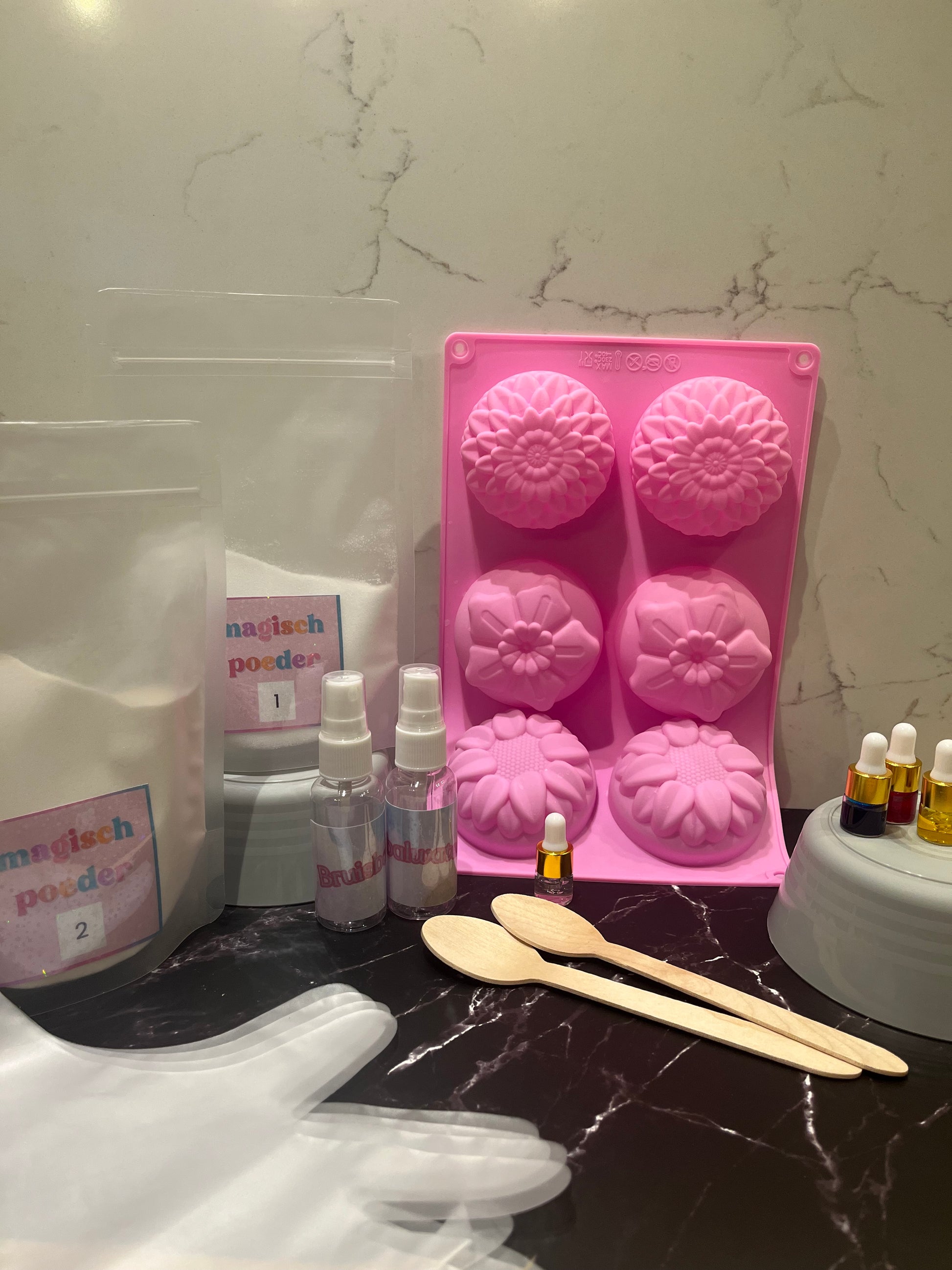- Je krijgt 1 mal per 2 kinderen bij de Feestbox. Per mal kan je verschillende bruisballen maken.